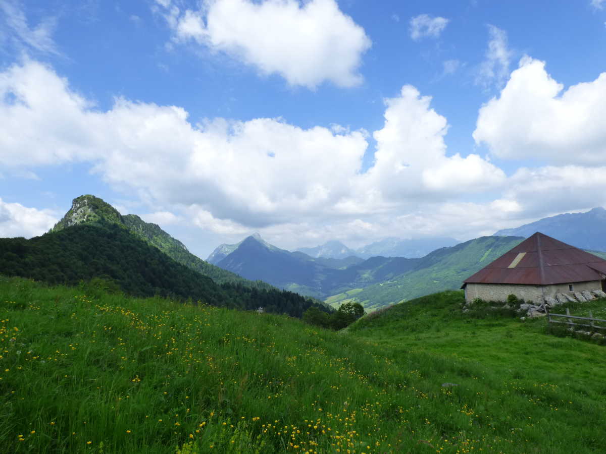 Au col de la Buffaz (1439m), continuer tout droit pour rejoindre le chalet de la Buffaz (1498m).