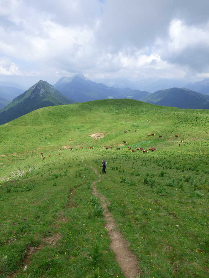 Le sentier ensuite est très agréable, en sous-bois ou à découvert. Puis on arrive au pied de l'alpage (1465m) qu'il faut remonter.